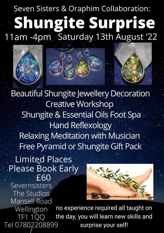 Shungite is the stone that removes all toxins/energizes/detox’s/tunes chakra’s, with this workshop you will also learn how to get the best out of your shungite with helpful tips and use guides as well for purifying water and home environments, with Oraphim who have been leading the way with innovative and simple to implement devices to boost wellness instantly.