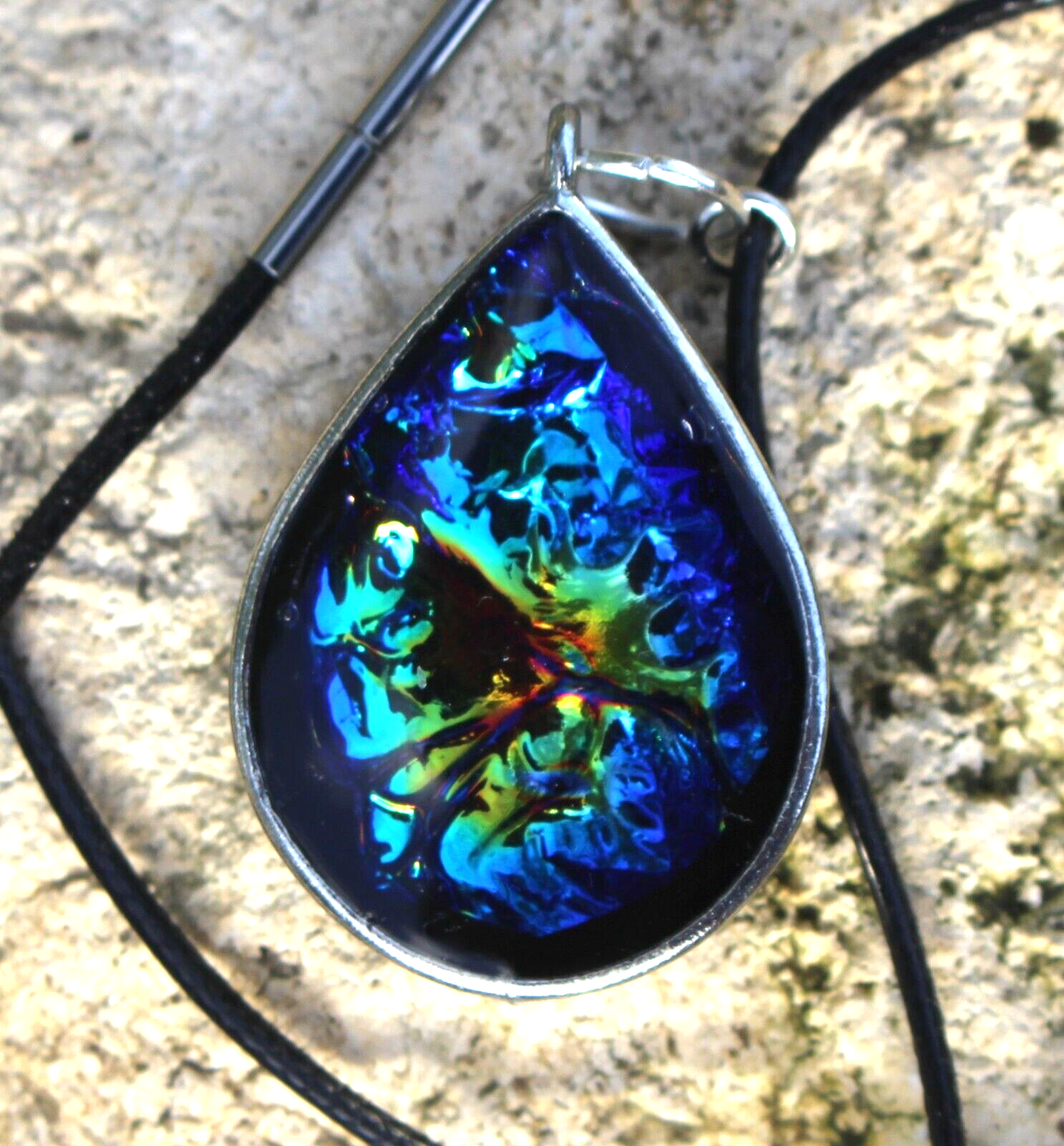 The widest part of the drop tear width is 26mm and the length is 34mm, they are all handmade, unique and stunning as you can see you will get one from this design set, with a vegan thong necklace.