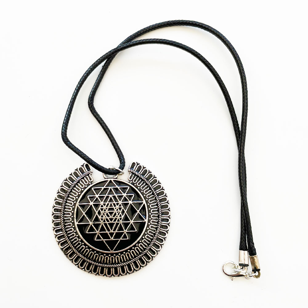 SHUNGITE SRI YANTRA Inlay Sacred Geometry Pendant 50mm By Oraphim: Emf Shield Powerful Transformational Meditating Manifesting Aid