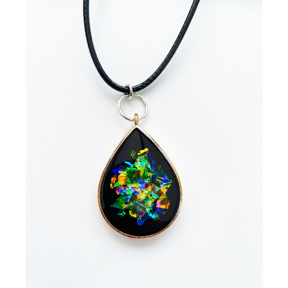 The pieces are in an alloy setting 25mm x 35mm. With a 50cm waxed cord necklace.